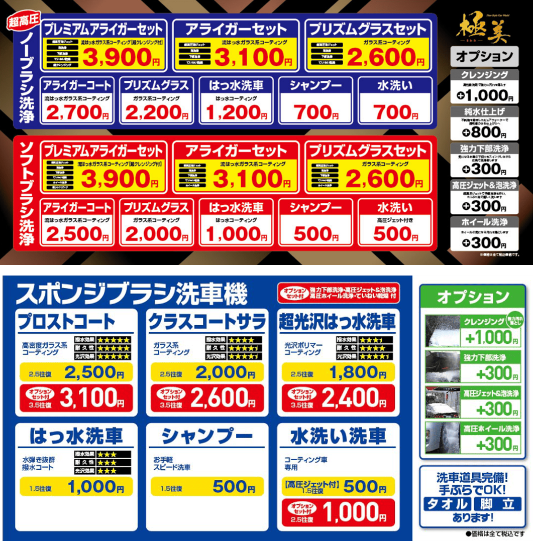 >セルフ洗車場の詳細はこちら>洗車料金はこちら